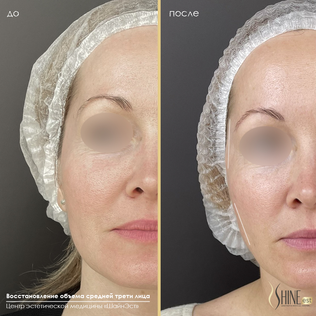 Объемная коррекция висков и средней трети лица филлером на основе гиалуроновой кислоты
