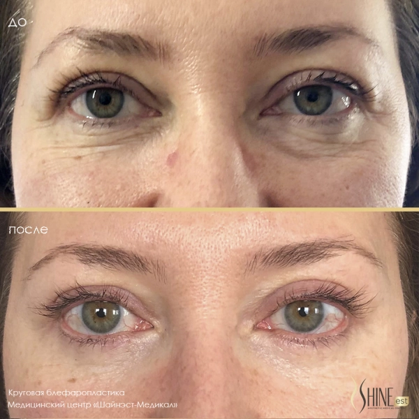 Круговая блефаропластика подтягивает всю область вокруг глаз.